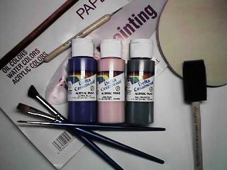 トールペイントを始めるのに必要な、筆やペイント道具には次のようなものがあります (最初から全部がいるわけではありませんので、必要になったときにそろえていけばいいと思います)